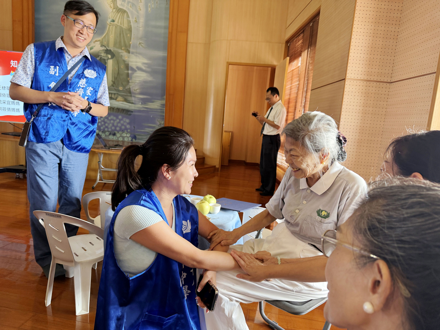家長會副會長關懷退而不休的教育志工王棣華老師。