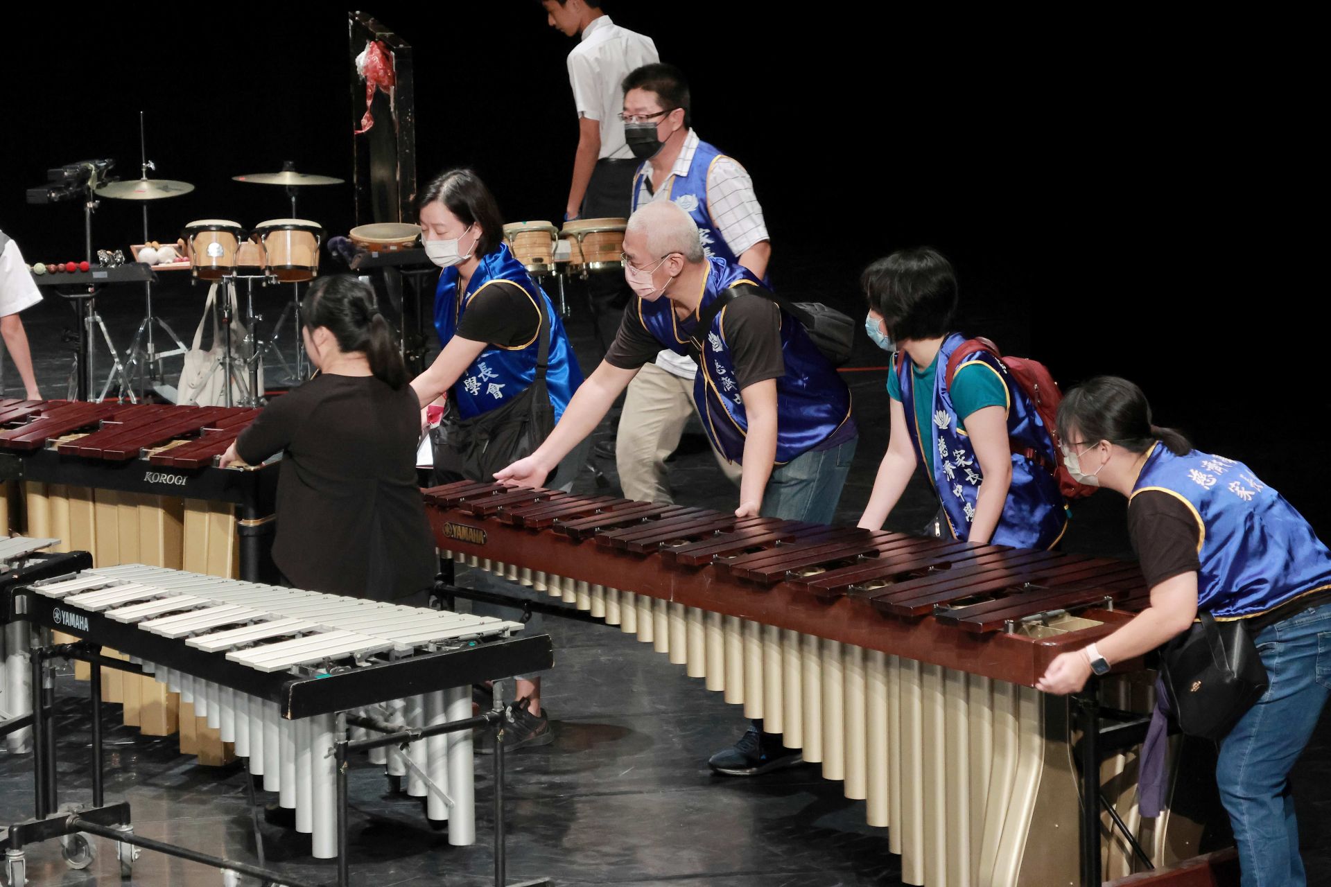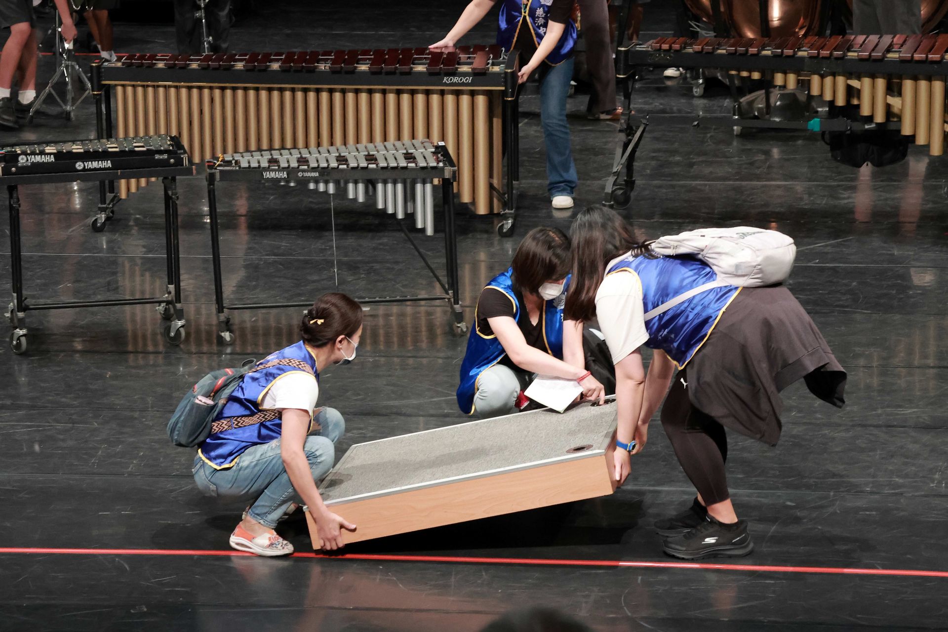 家長們在舞台旁協助搬運與布置樂器,默默成為孩子最可靠的支持力量。撰文/鍾雅慧、蘇秋維;攝影/陳天和