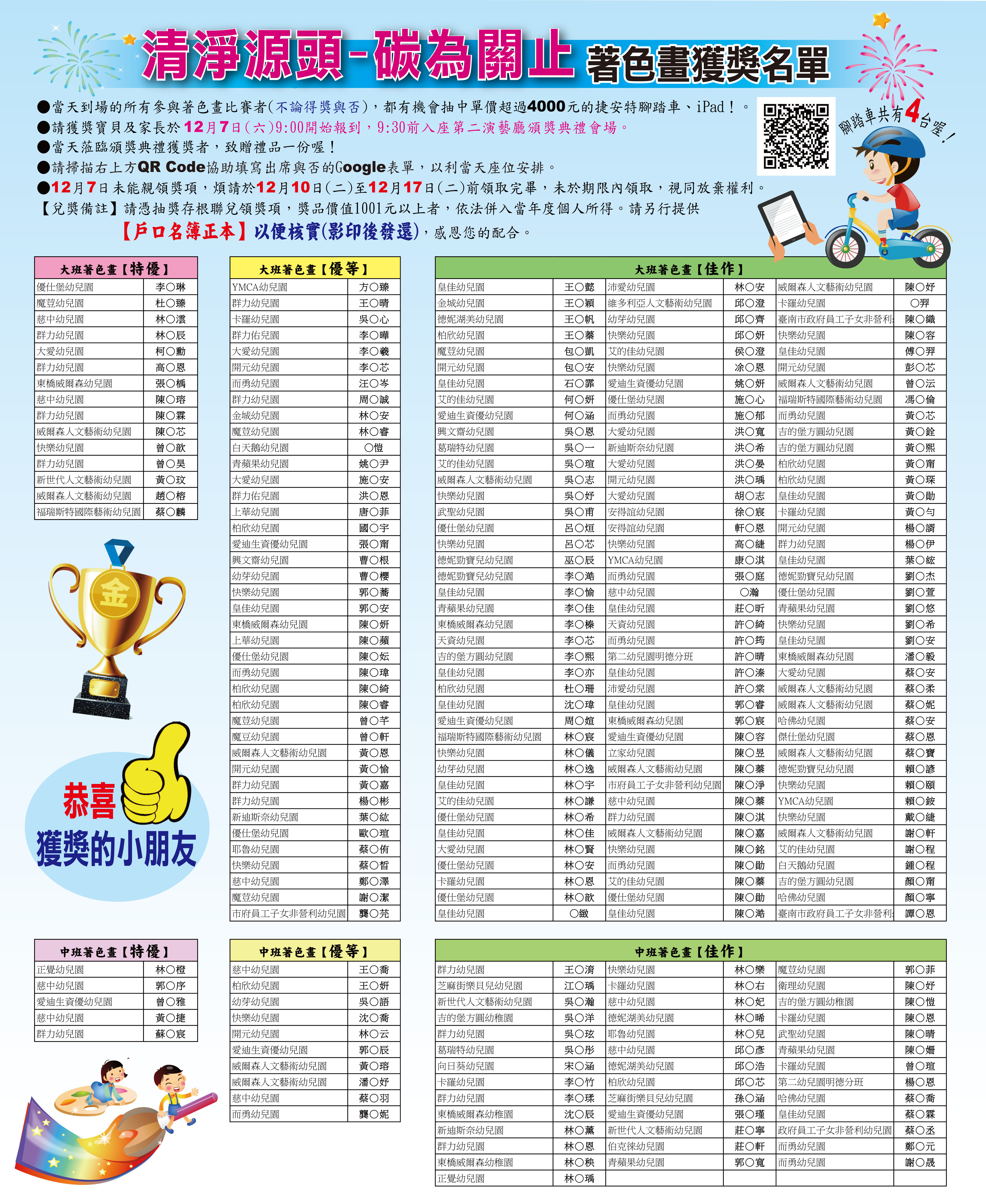 113年幼兒園著色畫比賽得獎名單