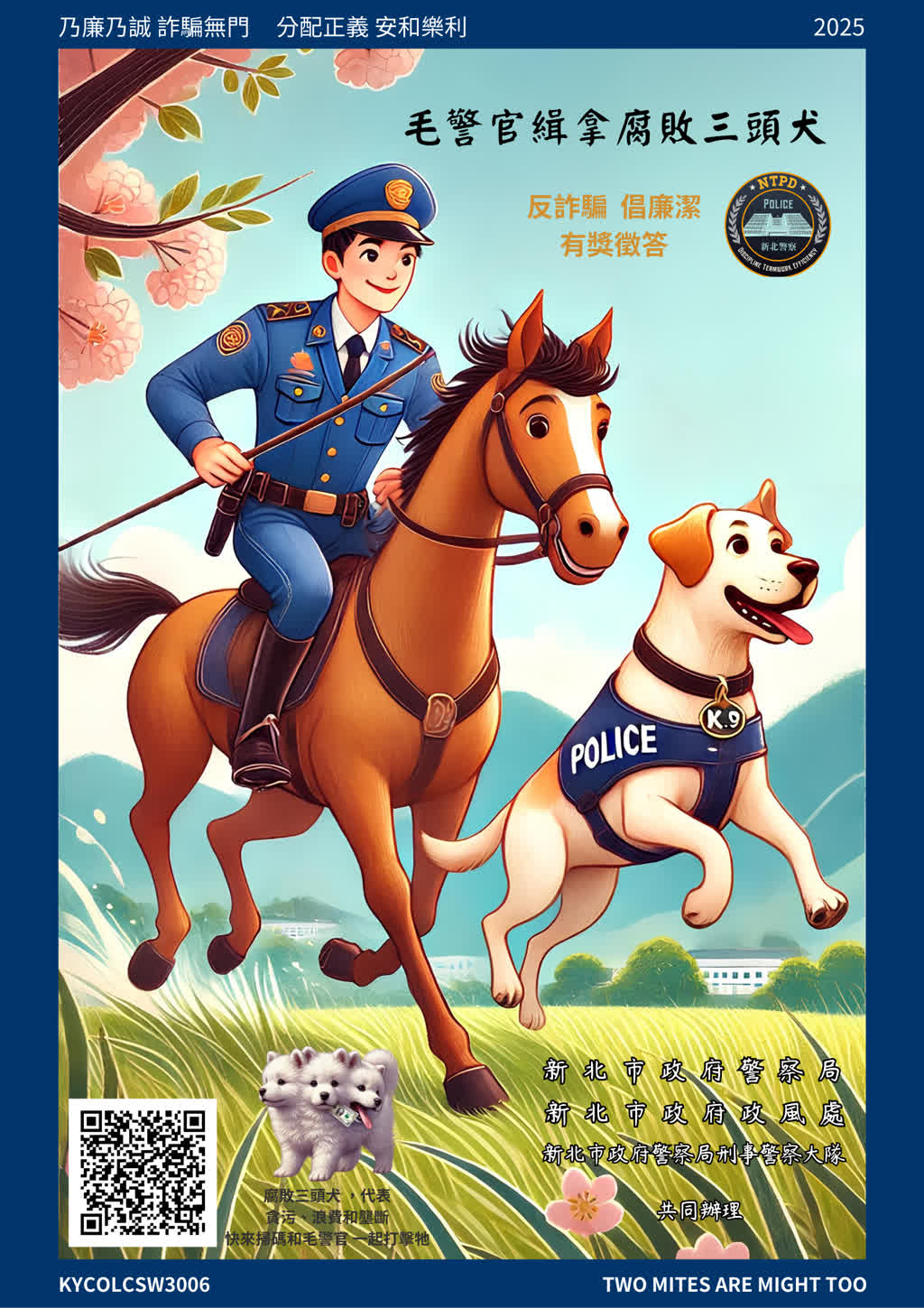 | 1、依據新北市政府警察局114年5月5日新北警政字第1140871852號函辦理。 2、鑑於當前詐騙現象猖獗,已為國人極關切之治安問題,亦是許多國家正面臨之挑戰,且其與社會結構及廉政反腐敗之間,同樣存在著密切關聯。為追求社會廉潔公義與和諧安定,並倡導重視清廉價值,尤以有關實踐「分配正義」此一具有仁民愛物襟懷之積極價值,進以實現安和樂利、Leave No One Behind(不遺漏一人)之永續發展目標;基前,該局特辦理旨揭有獎徵答活動。前開活動相關資訊如下: (1)、參與資格:凡在中華民國居住之人士,均可參加。 (2)、活動時間:自即日起至114年5月31日(星期六)止。 (3)、活動方式:有獎徵答題目共計10題,皆為單選題,得分須達70分以上方符合抽獎資格,並預計於六月下旬公布抽獎結果。 3、上開資訊,請貴校轉知及鼓勵師生踴躍參加;另相關資料可逕自於新北市政府警察局網站下載(首頁/訊息公告/廉政園地/三一廉政,網址:https://reurl.cc/W03m4y)。 |