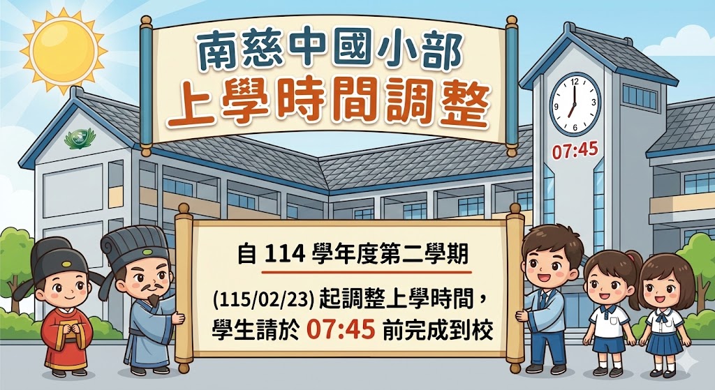 本校始終重視學生的健康成長與學習品質,期盼透過本次作息微調,讓孩子能以更充沛的精神迎接每日的學習生活。感謝家長的理解與支持,讓我們共同為孩子打造更友善、安心的學習環境。