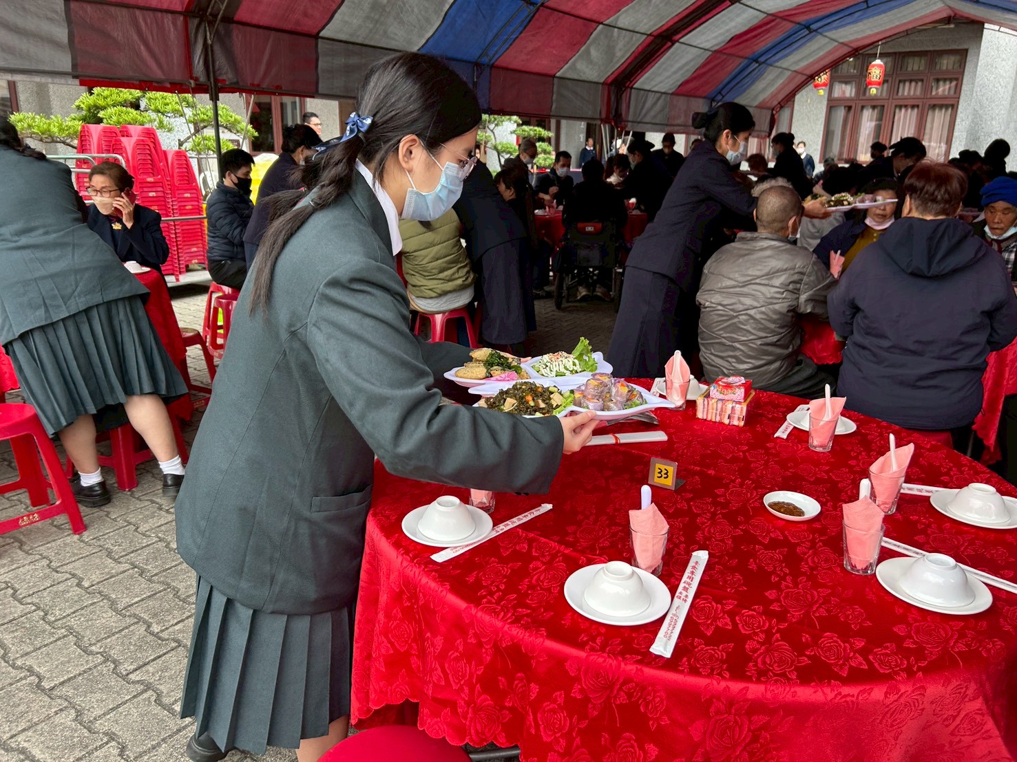 證嚴上人曾說:「如果到冬天來的時候,接近過年時,有的老人家獨老,沒有家人孩子來看他,過年到了他會更加孤單。」臺南慈中親師生加入上菜秀行列,穿上圍裙的上菜秀,顯得更專業也更可愛。