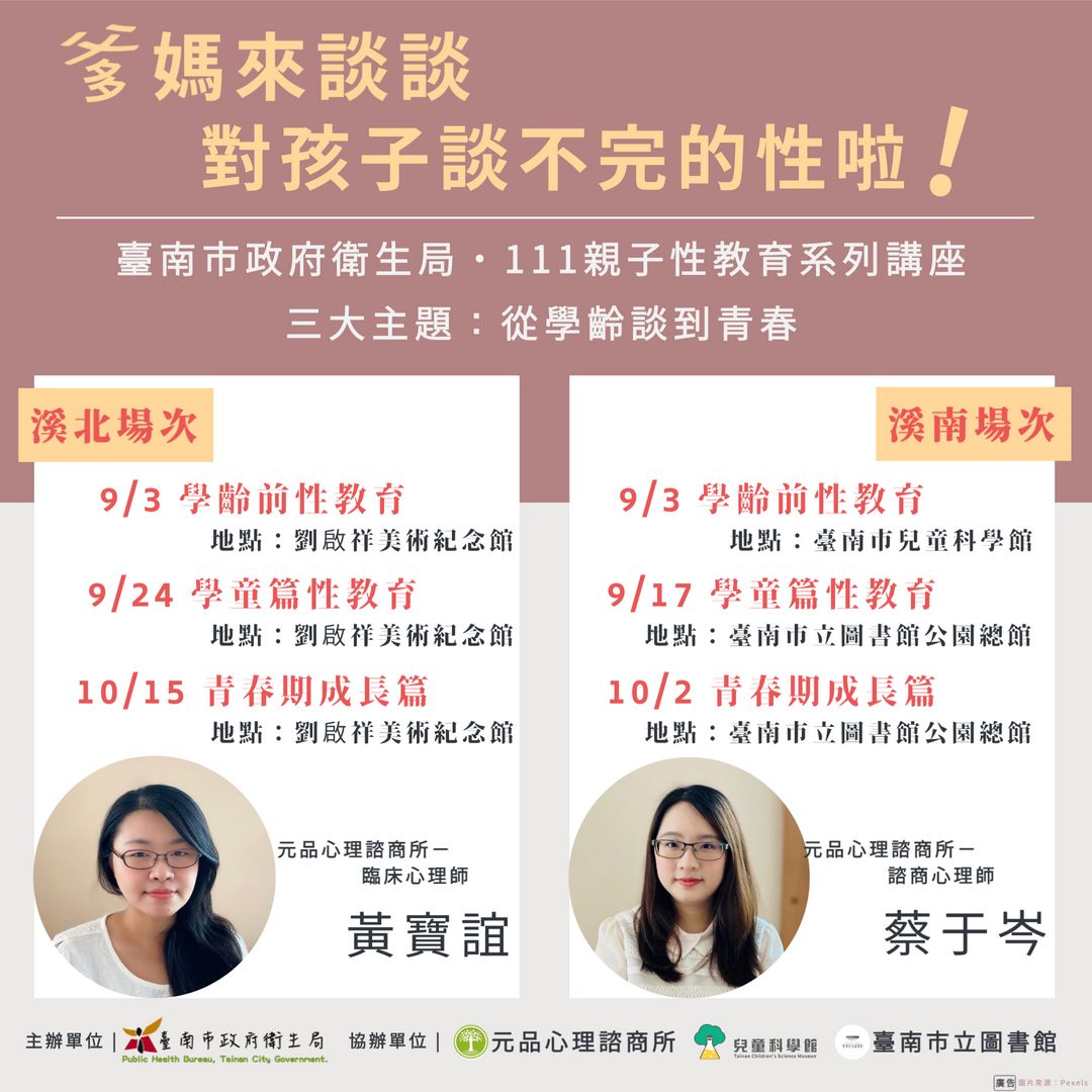 臺南市衛生局111年度親子性教育講座及宣導活動